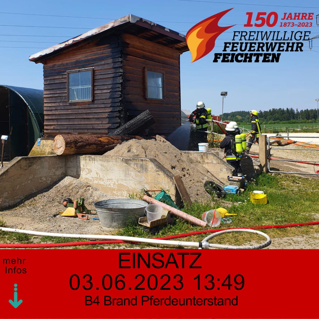 Am 03.06.2023 wurden wir um 13:49 zu einem B4 mit dem Stichwort Stall/Scheune alarmiert. Gemeinsam mit unserer Patenfeuerwehr @ffwheiligkreuz löschten wir unter Atemschutz den Pferdeunterstand. Glutnester wurden mit der Wärmebildkamera erkannt und abgelöscht.