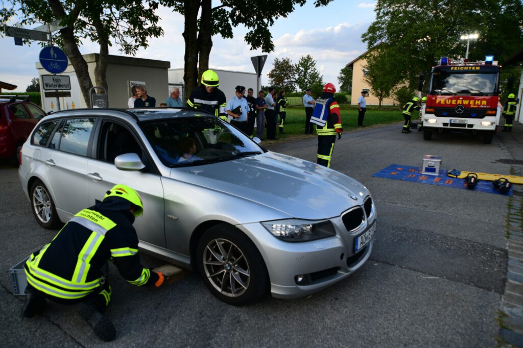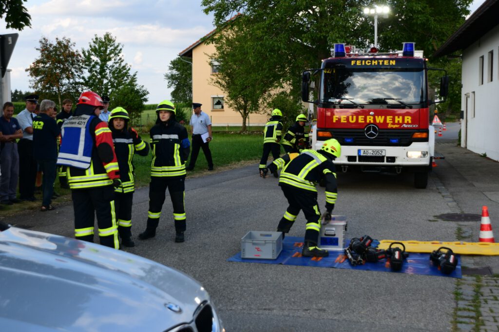 Unter kritischen Blicken von den Schiedsrichtern aus der Feuerwehr Altötting, von Vertretern der Kreisbrandinspektion und zahlreicher Zuschauer hat am 27.07.2022 die Freiwillige Feuerwehr Feichten die Leistungsprüfung „Technische Hilfeleistung“ mit 14 Teilnehmern auf zwei Durchgängen jeweils fehlerfrei bestanden. Leistungsprüfungen dienen als Kontrolle des Ausbildungsstandes der Feuerwehrleute in den Grundlagen des Feuerwehreinsatzes.
